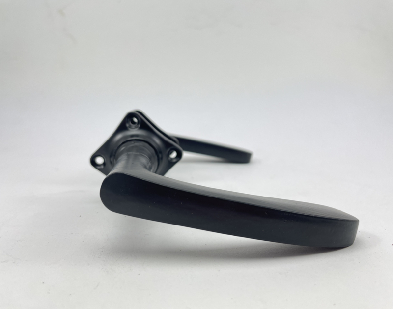 Deze klink is van giet ijzer met een zwarte coating. naar origineel oud model.